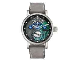 El Space Timer Gravity presenta una esfera tridimensional inspirada en la superficie lunar, combinada con guilloché artesanal. Impulsado por un movimiento automático y alojado en una caja de acero, este modelo ofrece una interpretación contemporánea de la relojería mecánica con una estética cósmica y distintiva.
