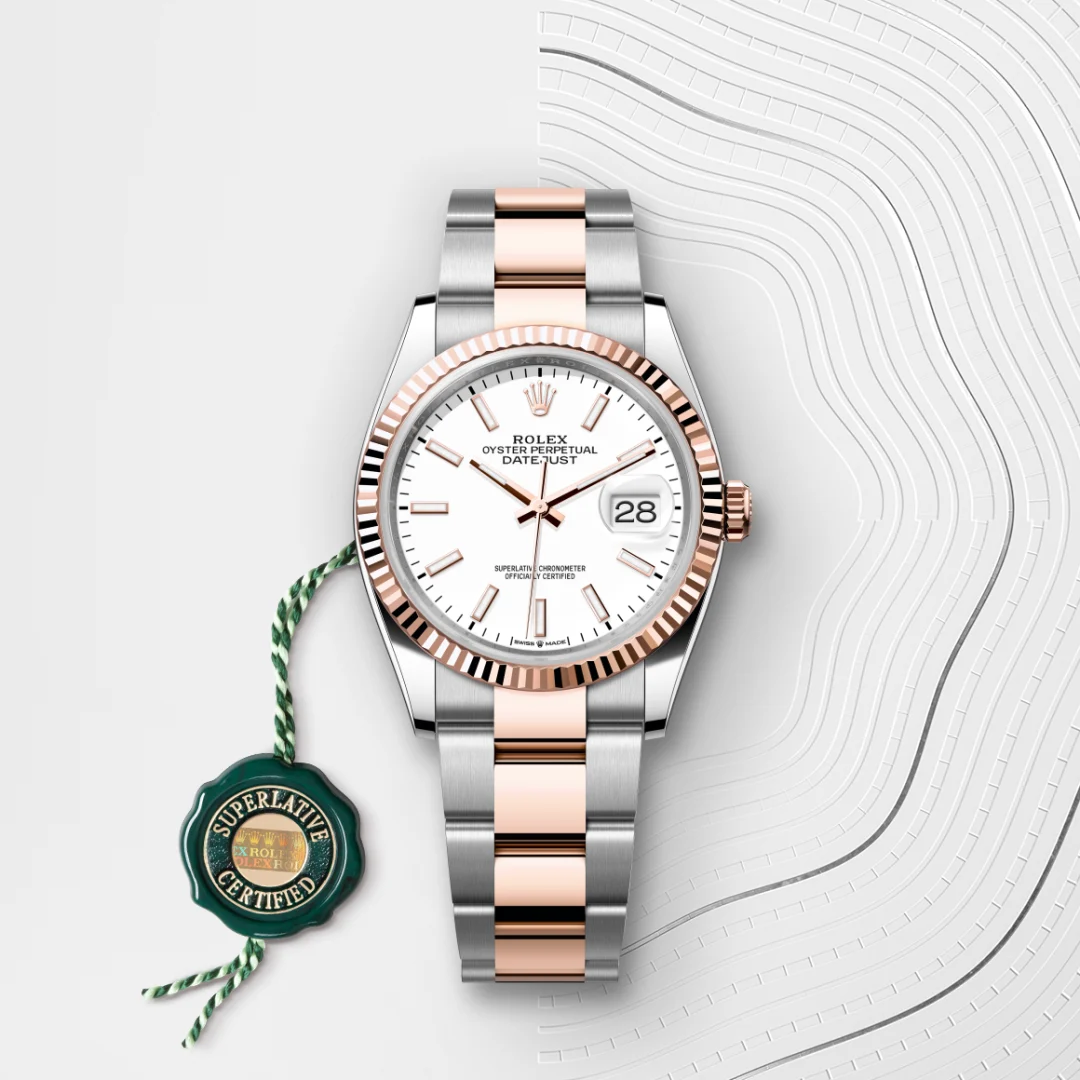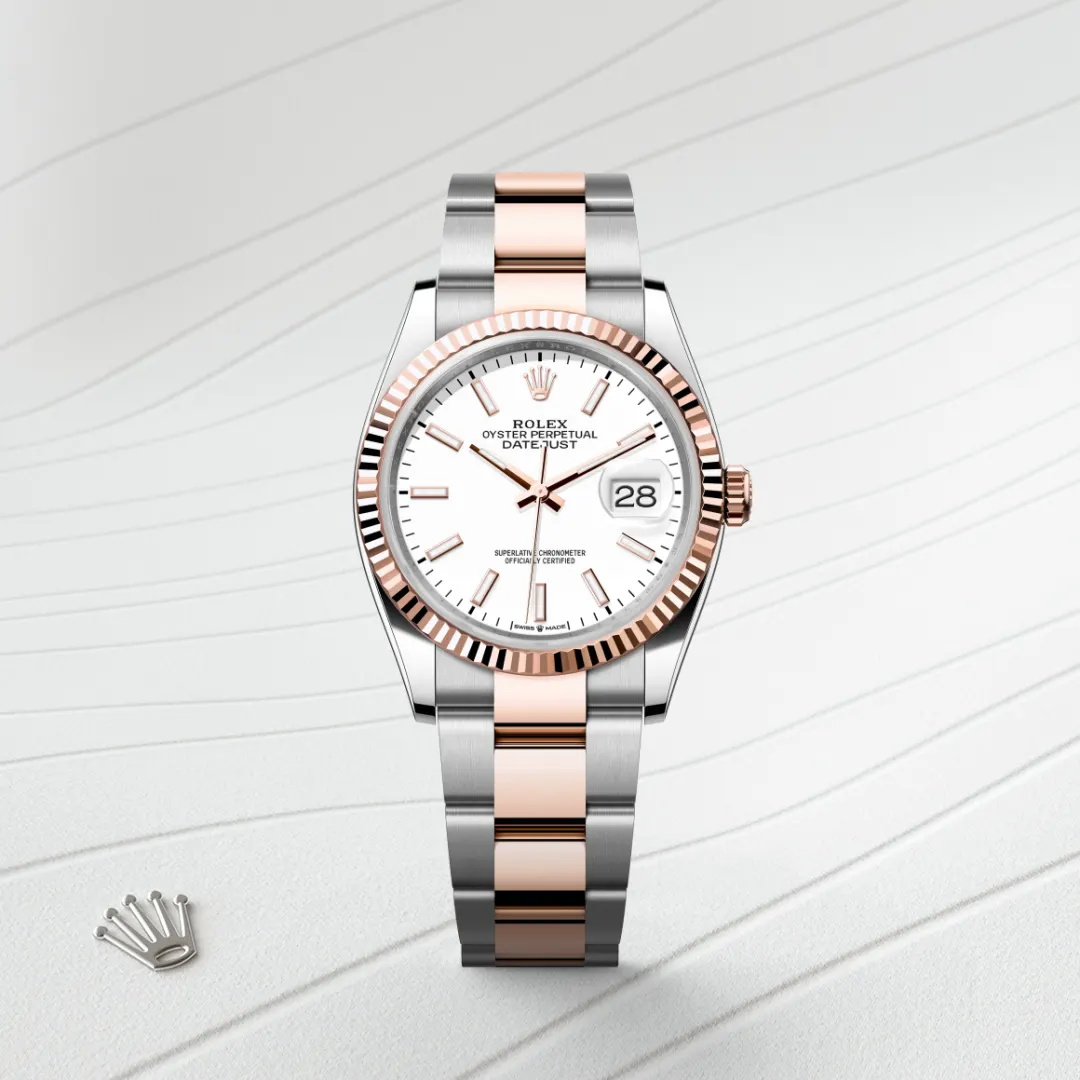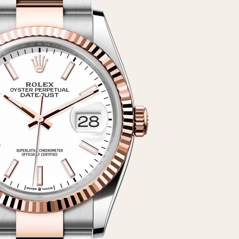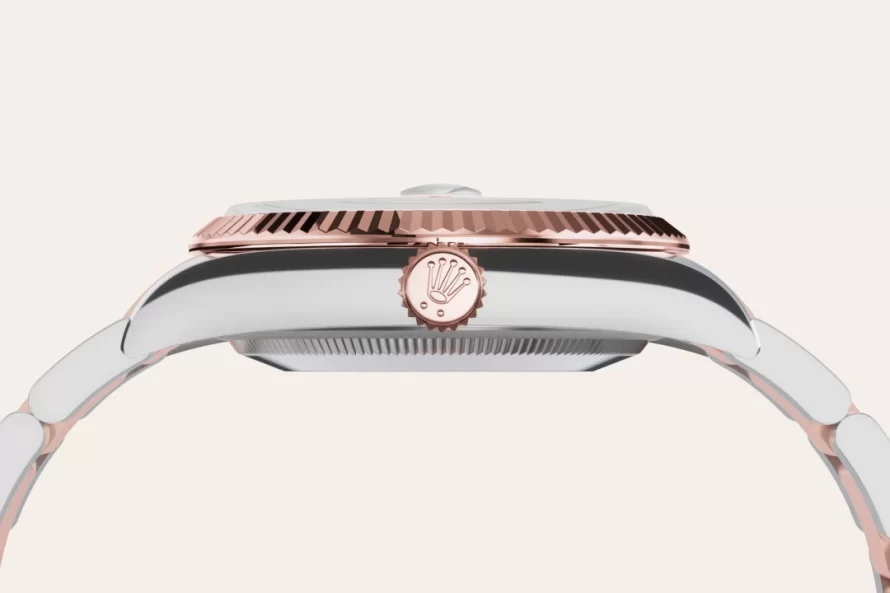 El bisel estriado de Rolex es una marca de distinción. En un principio, el diseño estriado del bisel Oyster tenía una función específica: servía para atornillar el bisel a la caja garantizando la hermeticidad del reloj. Además, era idéntico al acanalado del fondo de la caja, atornillado a ésta por la misma razón, mediante herramientas específicas de Rolex. Con el tiempo, el estriado se convirtió en un elemento puramente estético, una auténtica característica distintiva de Rolex. En la actualidad, el estriado es una marca de distinción, en oro en este Datejust 36.