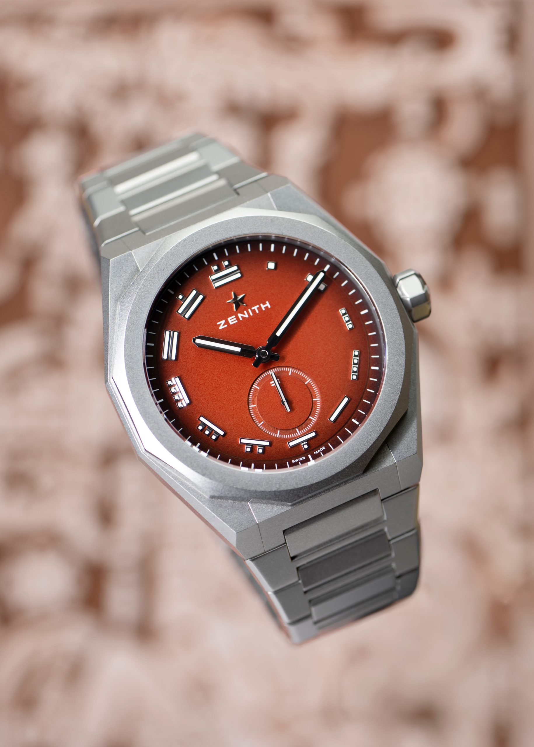 Lo primero que se sale de la convención es el color, el cual no es exactamente rojo, ni totalmente naranja, en realidad es color terracota. De nuevo, como todo en la relojería, nada es coincidencia.