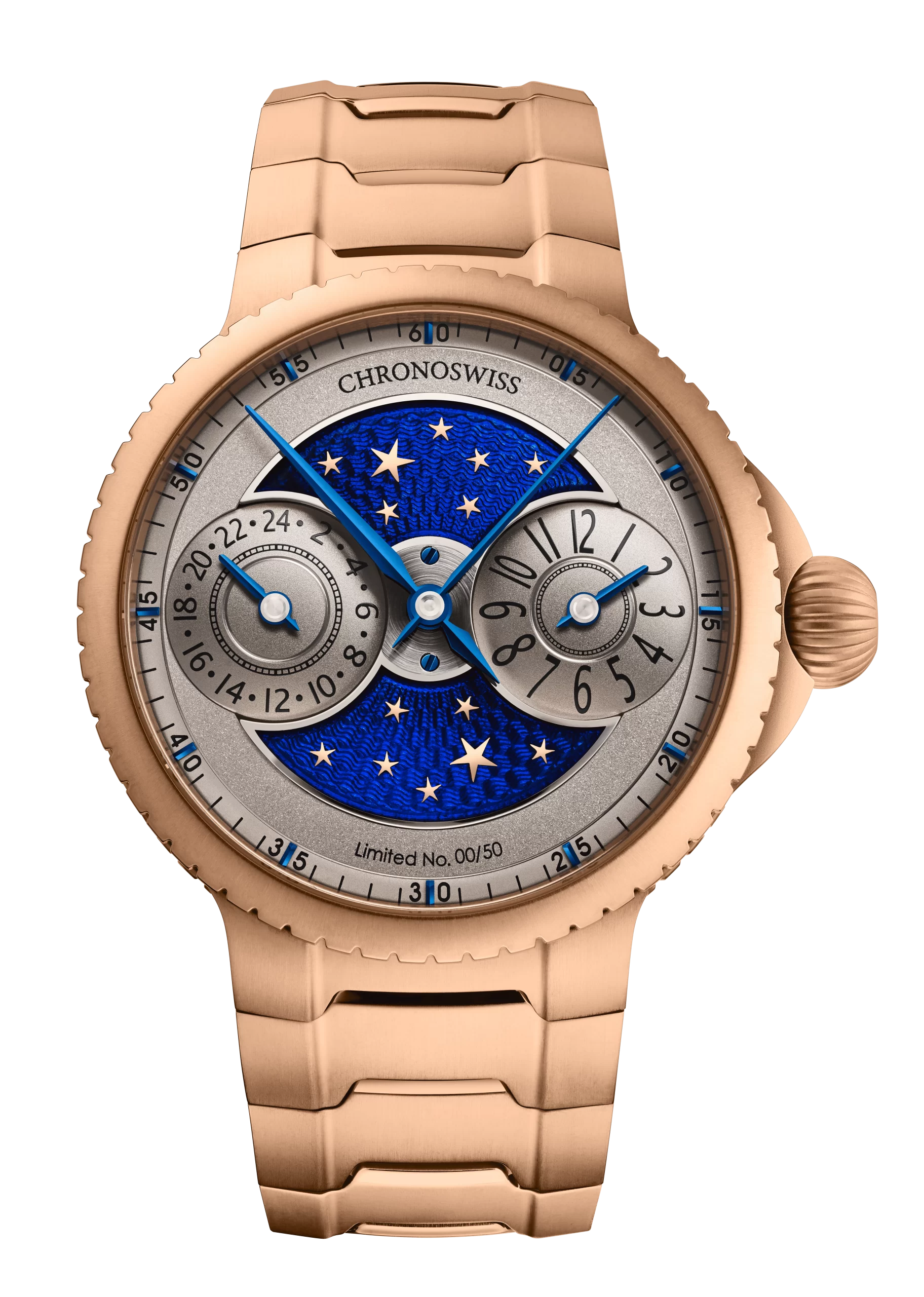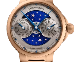 Un reloj que combina precisión y diseño contemporáneo. Su esfera en esmalte Sky Gold aporta profundidad y luminosidad, mientras que la función GMT permite leer dos husos horarios con total elegancia.