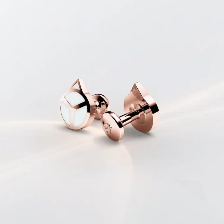Gemelos Rolex fabricados en oro Everose de 18 quilates que evocan la aguja de las horas de los relojes Profesionales Rolex, equipados con una visualización Chromalight.